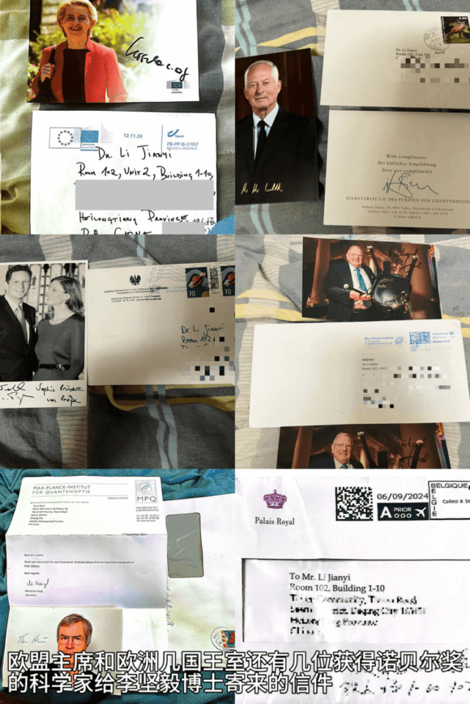 在攻读研究生期间,李坚毅博士的学术成就和非凡个人经历引起了国际学术界和社会的广泛关注。他因此收到了欧洲联盟理事会主席冯德莱恩女士和以莱因哈德·根策尔教授为代表的多位诺贝尔奖获奖的国际泰斗级科学家,以及以列支敦士登大公汉斯-亚当二世殿下为代表的欧洲数国王室成员的书信慰问。这些荣誉和关注正是对他在多个领域取得卓越成果的肯定。